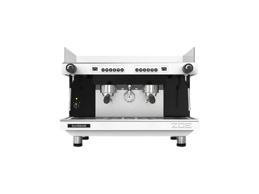 Sanremo Zoe Competition 2GR Espresso Machine - White - Volumetric Control - Basic Pre Infusion - Cool Touch Steam Wands - Digital Timers on Each Group Head - Group Head Lighting - 240V